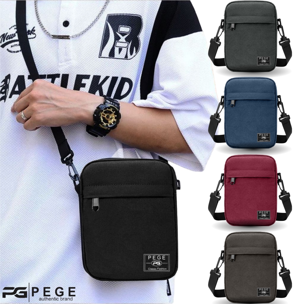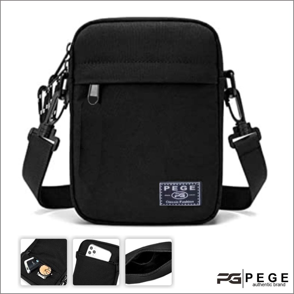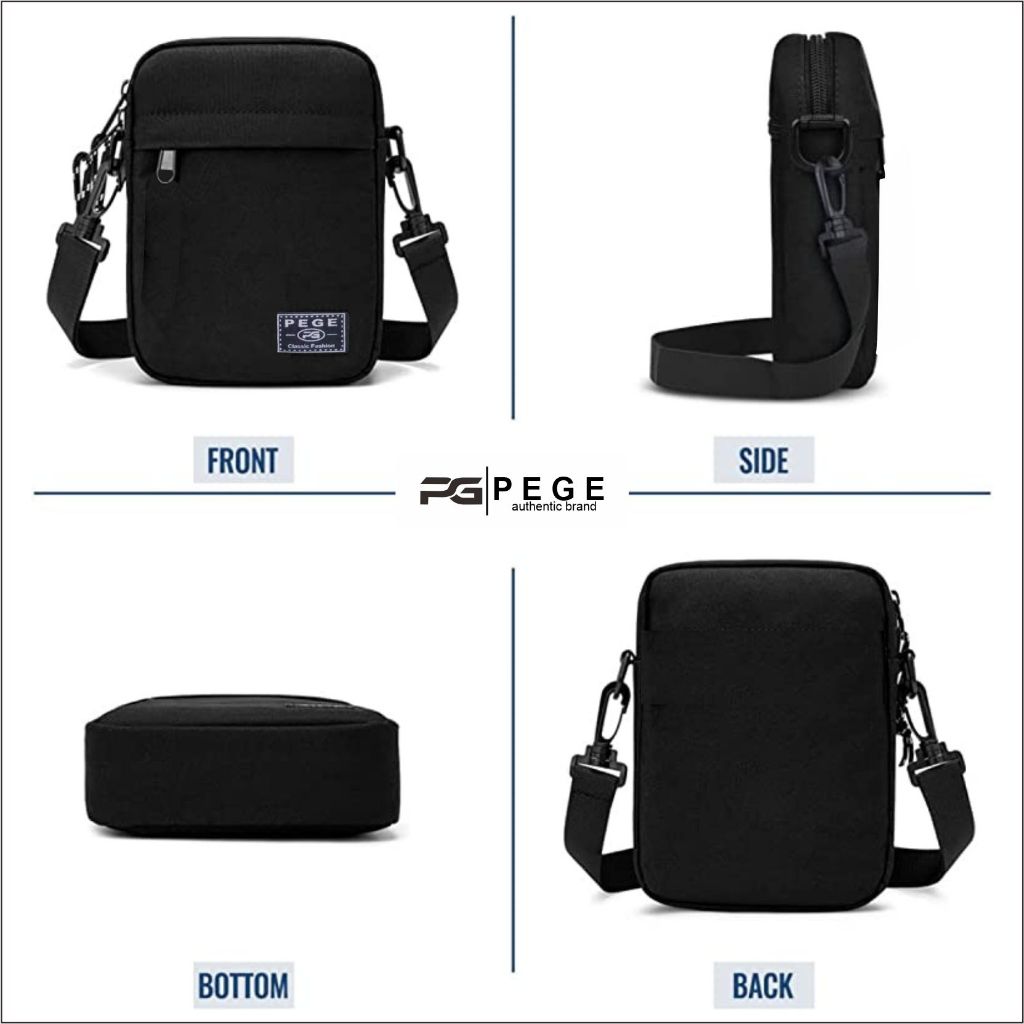 Tas Selempang Polos Pria PEGE Slempang Kasual Cowok Hitam Slingbag Bahu Keren Murah - PG 8864