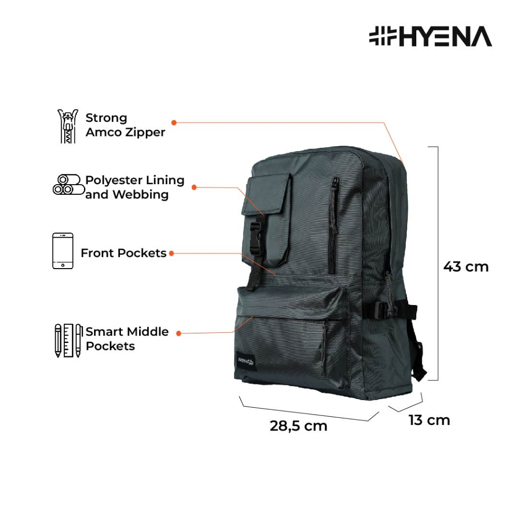 Hyena - Ransel Backpack Collyn Series Tas Kuliah Polos Pria Wanita Tas Sekolah SMP SMA (KK34)