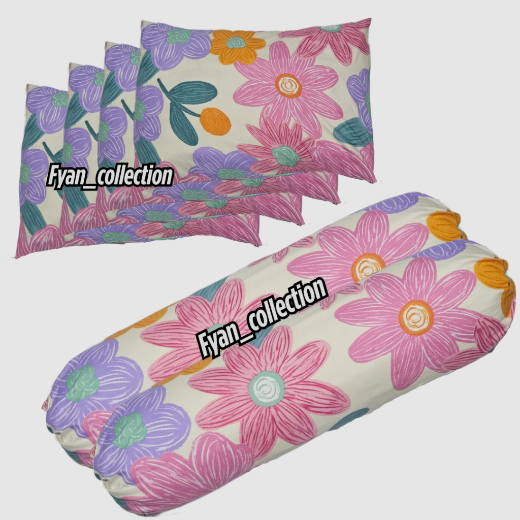 sarung bantal dan sarung guling set Isi 6 pcs 4 sarban 2 sargul motif bunga