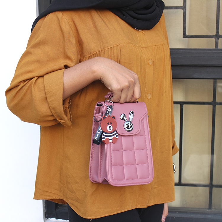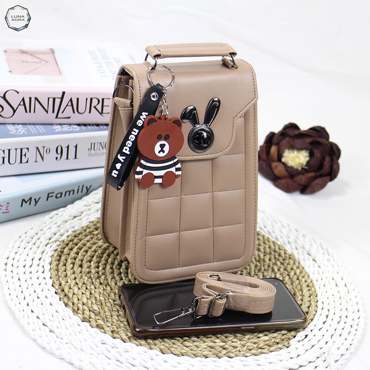 LUNA AURA Tas Kotak Hp Wanita Minixo Bordil Kunci Kelinci Black Nekkel DK 10 Tas Handphone Kekinian Tas Selempang Hp Tas