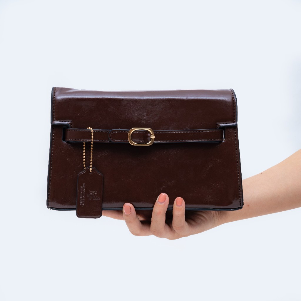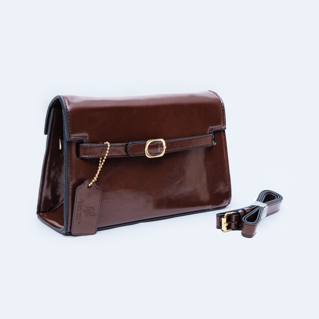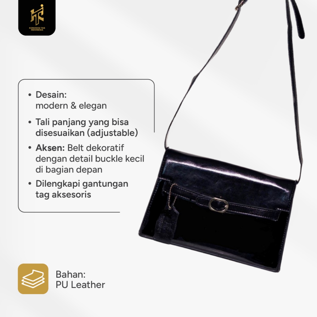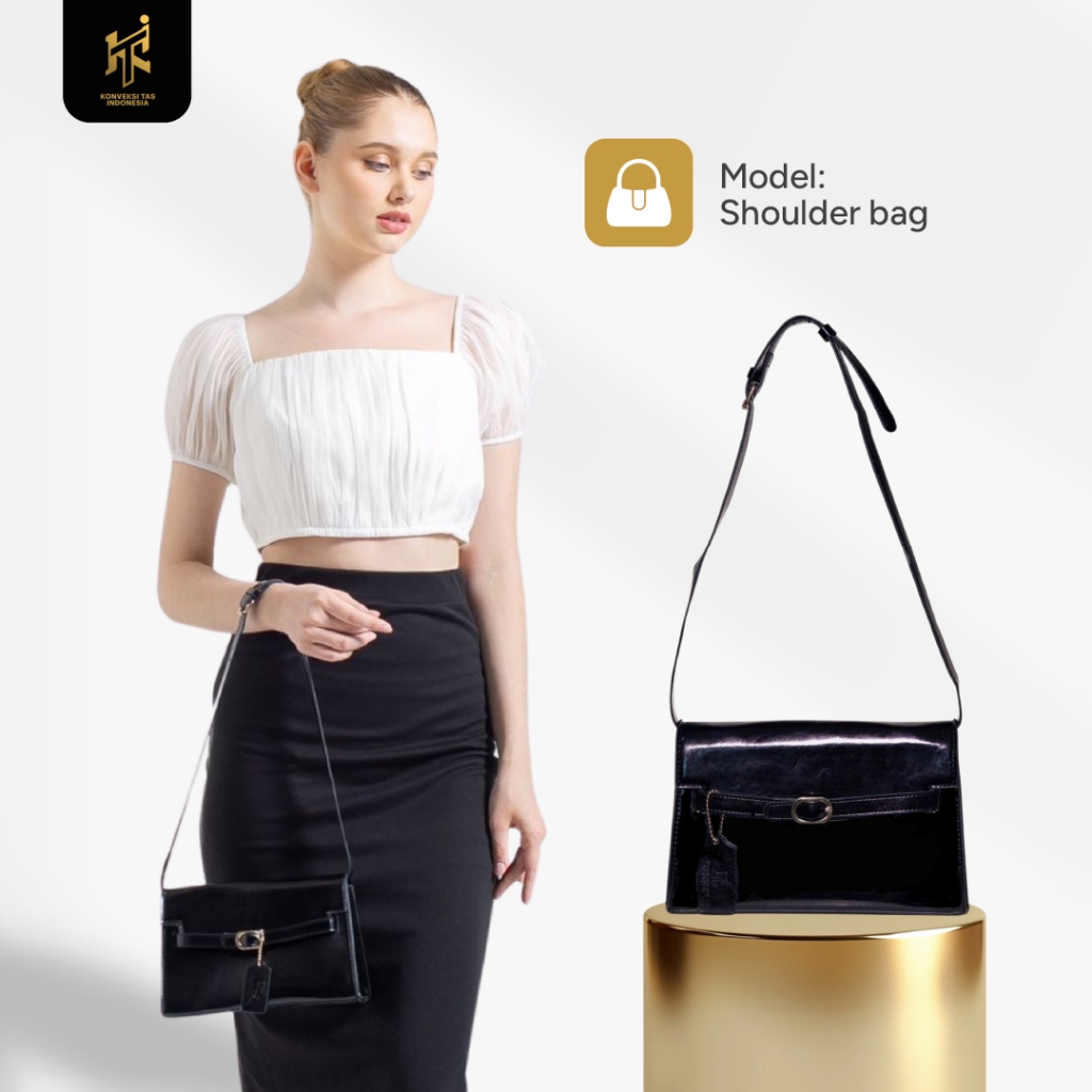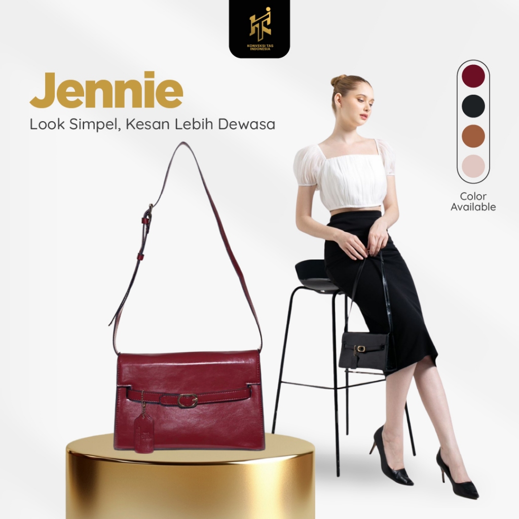 KTI Shoulder Bag Wanita Jennie Bahan Leather PU Simple Aksen Belt Dekoratif Elegan Semi Formal Tali Adjustable