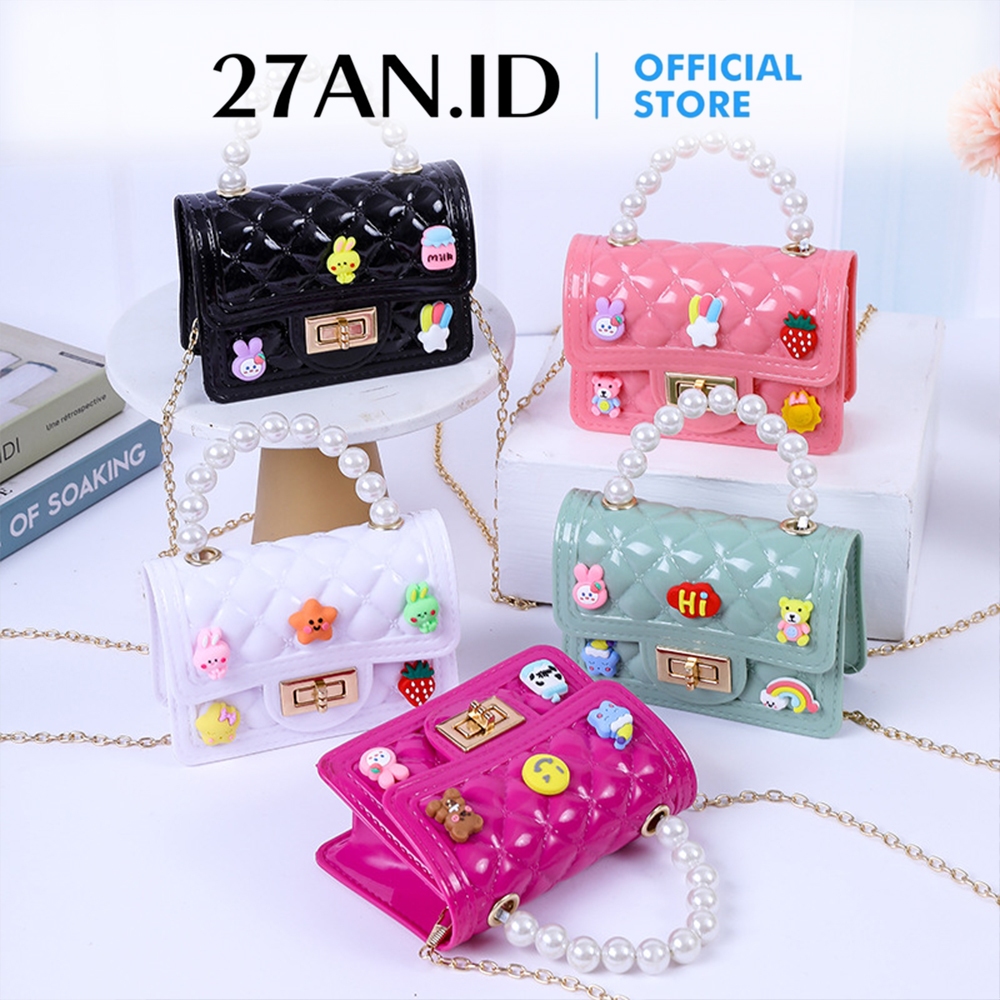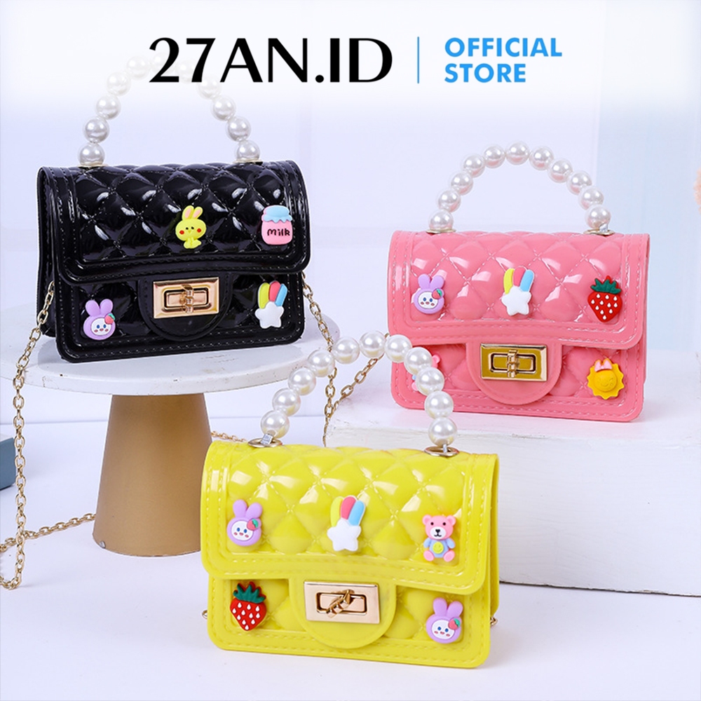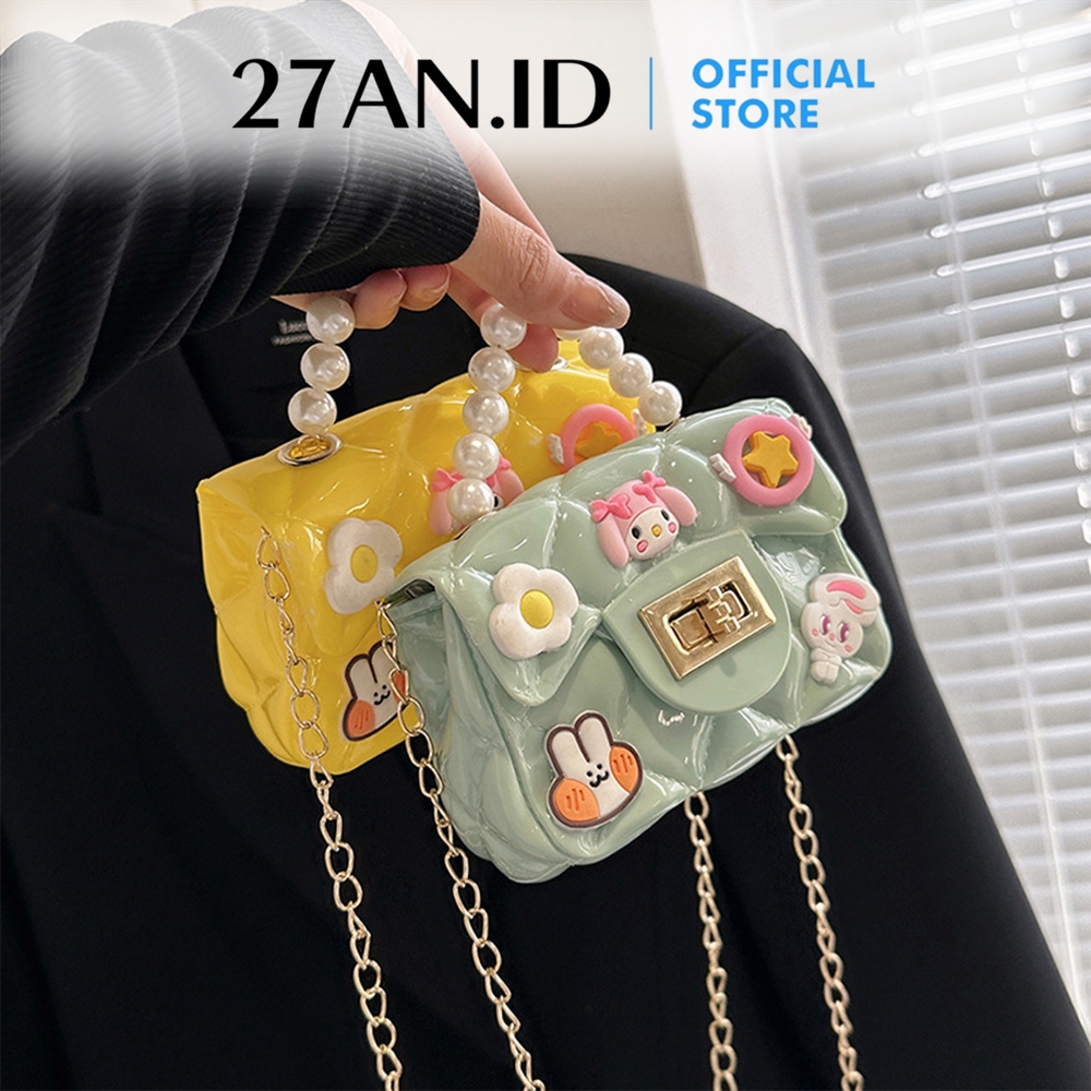 ( 27AN.ID ) Tas Selempang mini jelly T116 / T115 motif karakter lucu tas wanita mutiara jelly bag fashion
