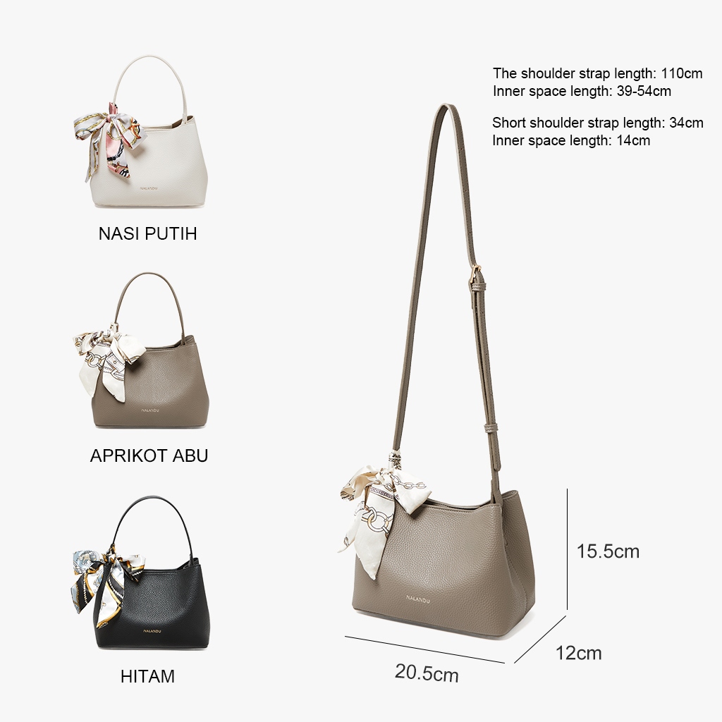 NALANDU Tas Bucket Wanita Terbaru 2025 - Tas Bahu Selempang Sling Bag Fashion, GRATIS Pita Cantik!