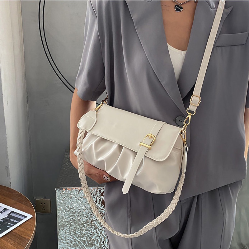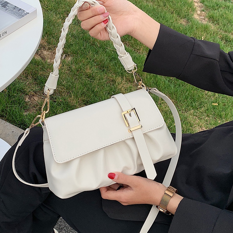 NEWLAN BB011 Tas Bahu Wanita Sling Bag Warna Solid Elegan Kulit PU Syal Sutra Wanita Tas Bahu Wanita Sling Bag Warna So