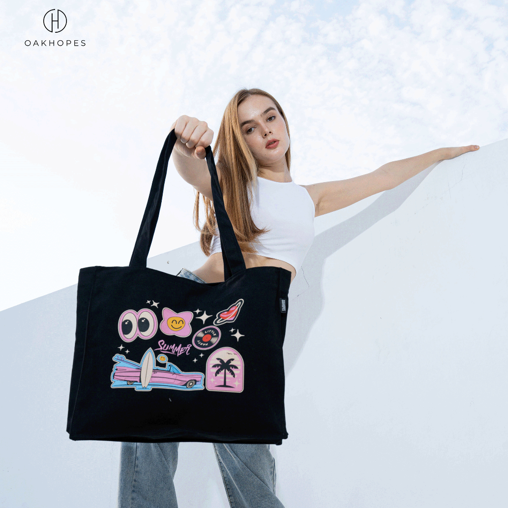 Oakhopes - Totebag Kanvas - Tas Jinjing Tote Bag Pria Wanita - Phero Bag Hitam