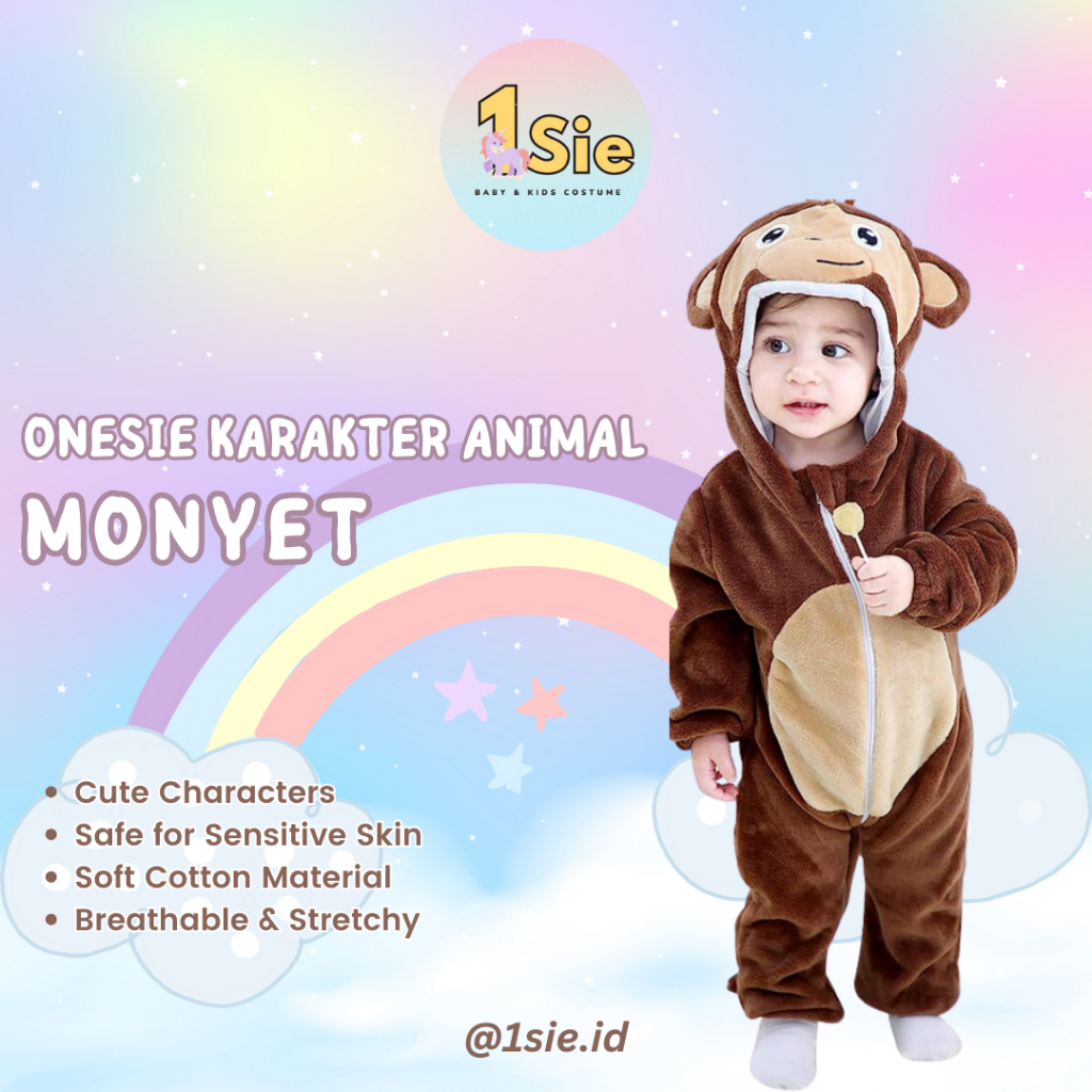 MONYET 1sie Onesie Hewan Grosir Murah Baju Karakter dan Anak Baju Tidur Kostum Bayi Binatang Jumper Animal Romper Onesie Cewek Cowok