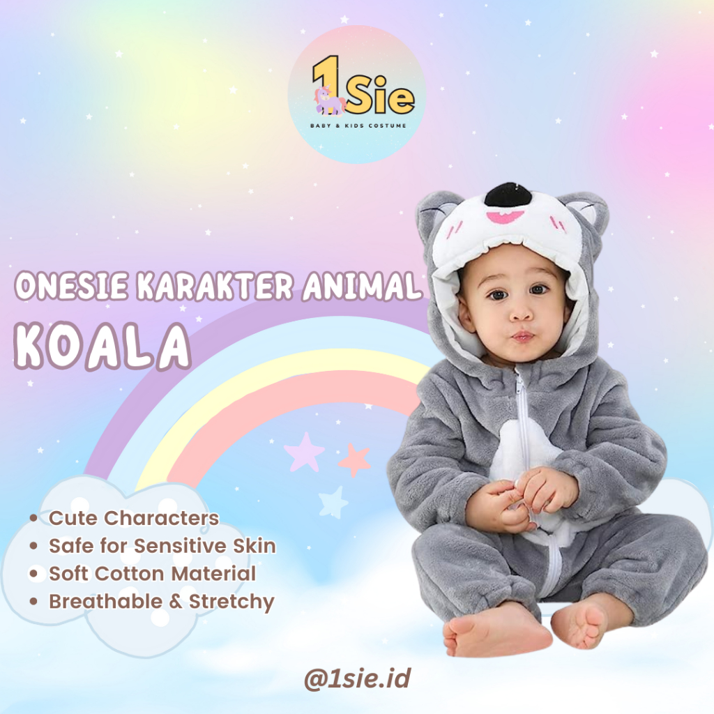 KOALA 1sie Onesie Hewan Grosir Murah Baju Karakter dan Anak Baju Tidur Kostum Bayi Binatang Jumper Animal Romper Onesie Cewek Cowok