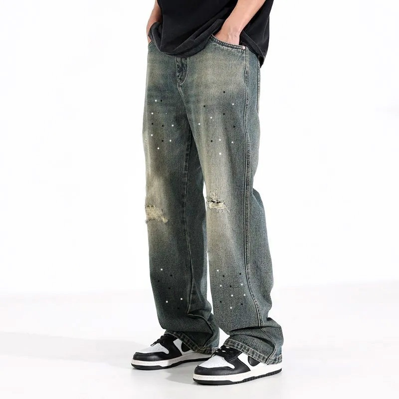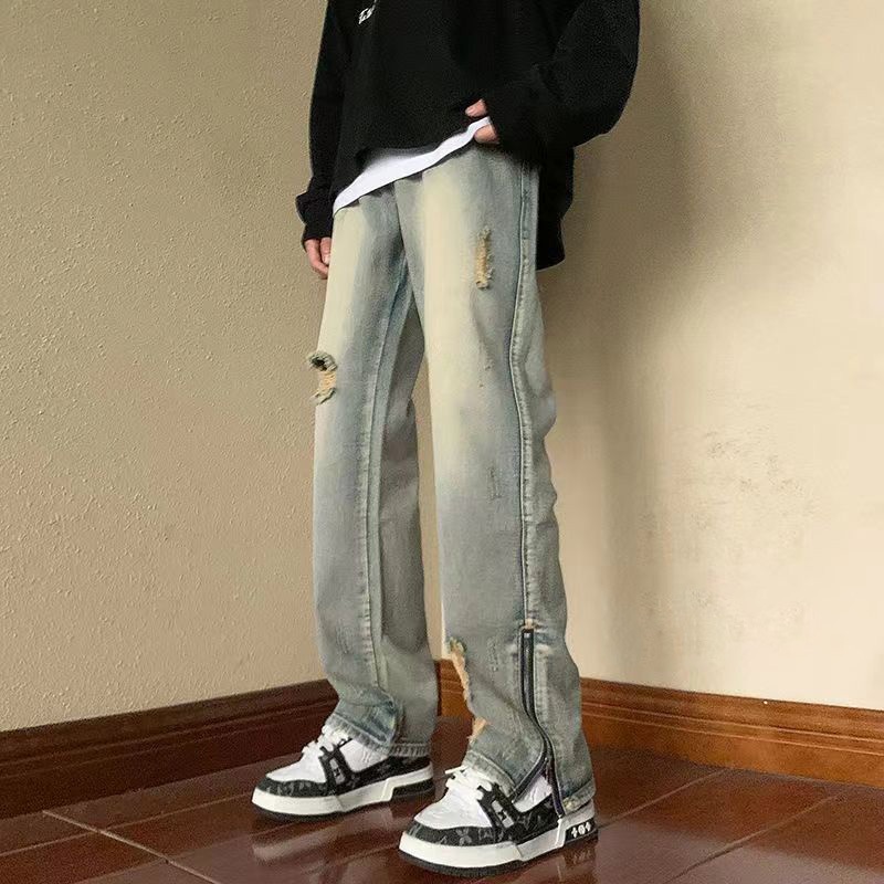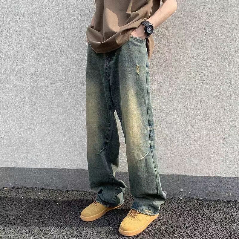 KeyBoy celana jeans pria panjang sobek baggy straight hitam denim pants casual longgar pants korean style original murah