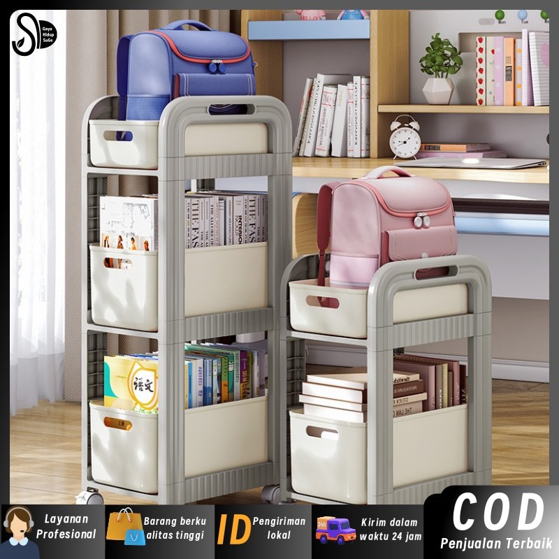 SuGe Bookbag Storage Rack - Rak serbaguna storage rack Rak penyimpanan buku, tas, produk bayi, rak dorong, meja makan pe