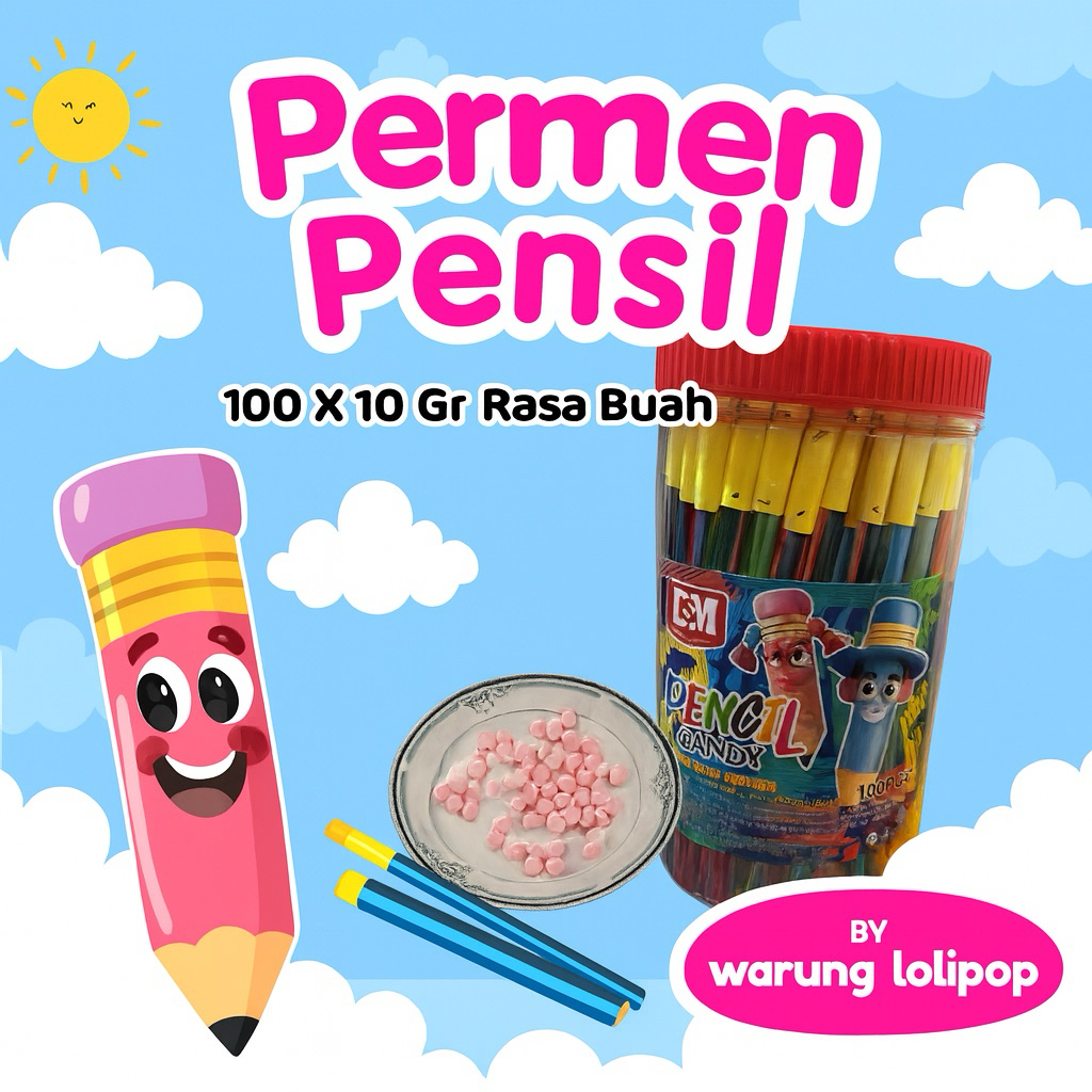Permen Pensil 100 x 10 Gr Rasa Buah Lucu & Unik | Cemilan Anak by Warung Lolipop