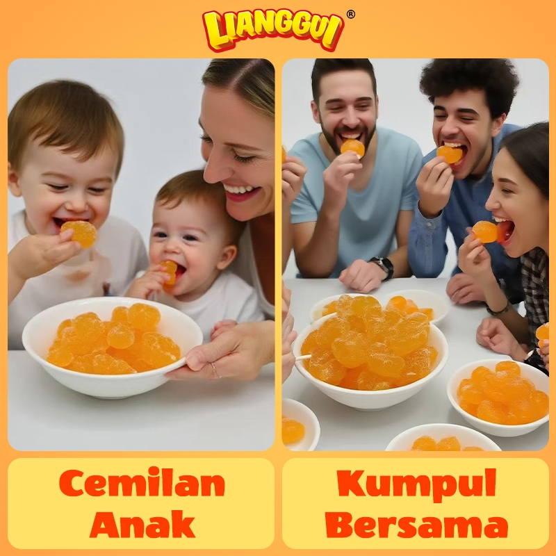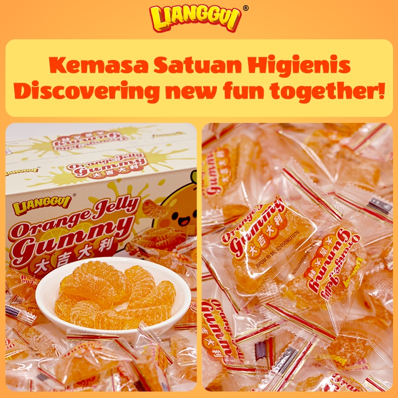 LIANGGUI Permen Jelly Jeruk 48pcs/400g HALAL - Kenyal Manis, Snack Kantor & Party
