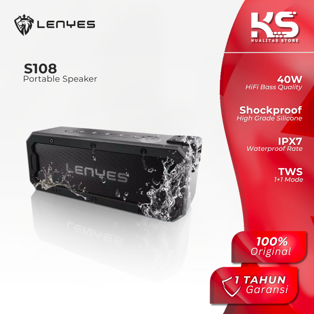 LENYES SPEAKER BLUETOOTH TWS V5.0 SHOCKPROOF AND WATERPROOF IPX7 40WATT HIFI STEREO S108