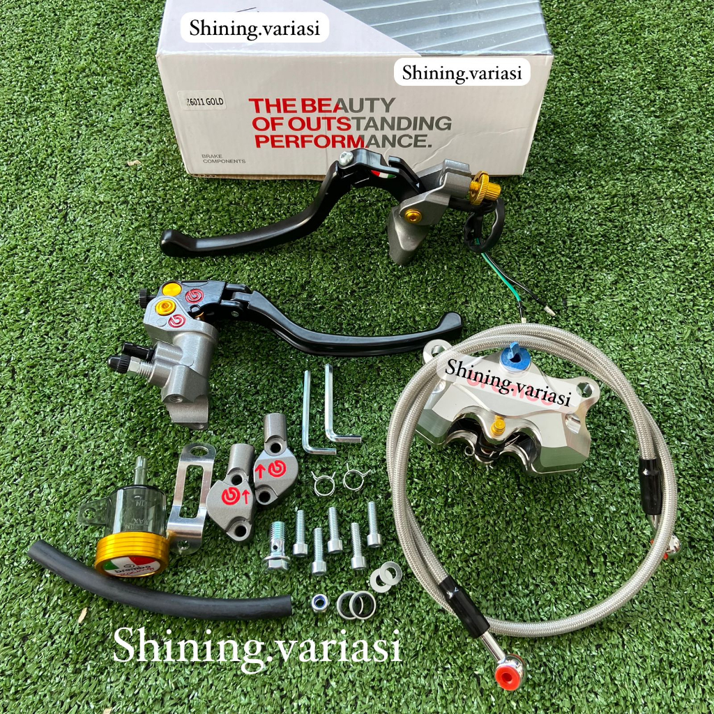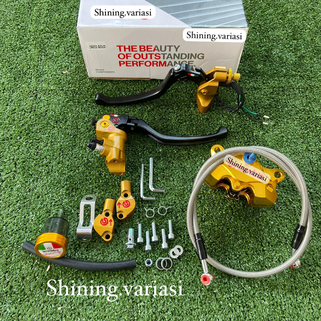 PAKET MASTER REM IZUMI 1 TABUNG SET KANAN KIRI + KALIPER PALA BABI 2 PISTON + SELANG REM DEPAN 95CM UNIVERSAL MIO VARIO