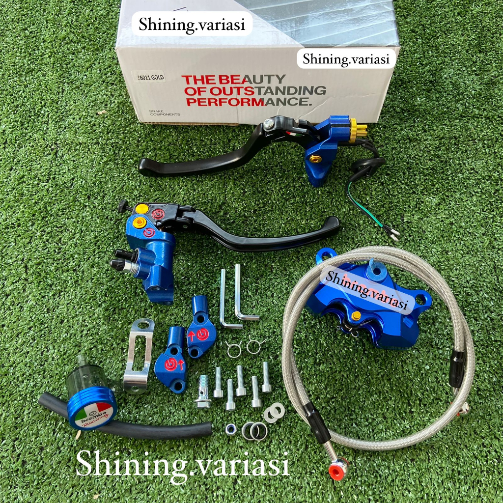 PAKET MASTER REM IZUMI 1 TABUNG SET KANAN KIRI + KALIPER PALA BABI 2 PISTON + SELANG REM DEPAN 95CM UNIVERSAL MIO VARIO
