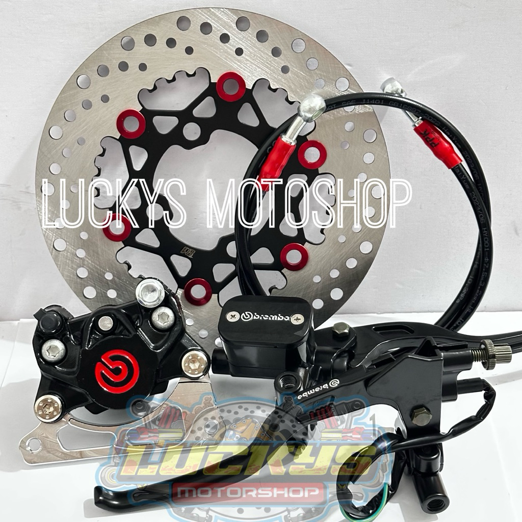 PAKETAN MASTER REM TABUNG KOTAK + CAKRAM DEPAN DIAMETER UK 220MM + KALIPER 2 PISTON BIG LOGO + SELANG REM 95CM + BREKET