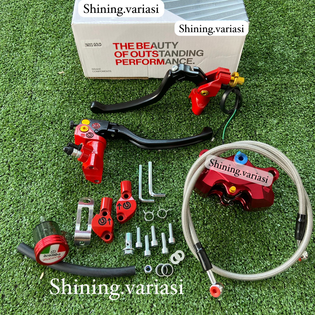 PAKET MASTER REM IZUMI 1 TABUNG SET KANAN KIRI + KALIPER PALA BABI 2 PISTON + SELANG REM DEPAN 95CM UNIVERSAL MIO VARIO