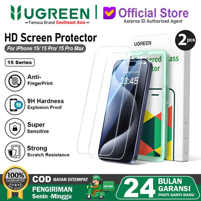 GRATIS ONGKIR ! UGREEN TEMPERED GLASS IPHONE 15 15 PRO 15 PRO MAX HD FULL SCREEN ANTI GORES - TEMPER GLASS, IPHONE 15