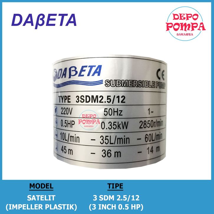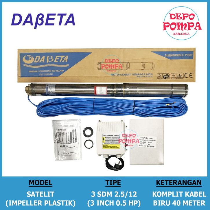 Pompa Satelit DABETA 3 INCH 0.5 HP KOMPLIT KABEL BIRU ASLI