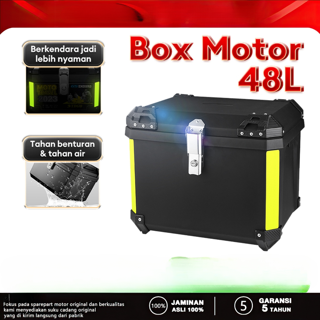 box motor belakang top box 48L kotak penyimpanan dengan lampu strip reflektif suku cadang