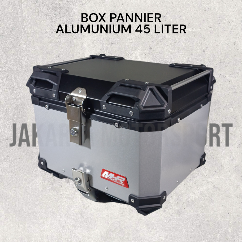 MHR Racing Top Case Box Alumunium 45L Silver Quick Release Tail Box Motor Touring Kotak + Sandaran