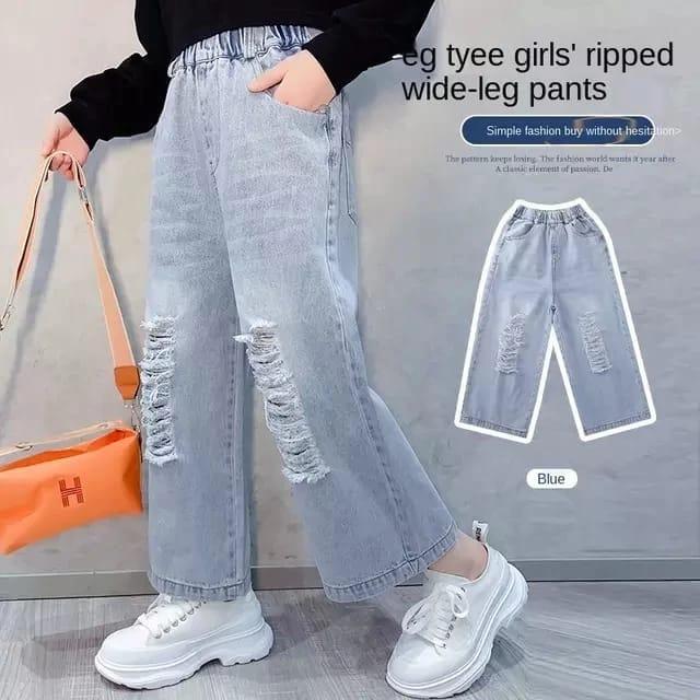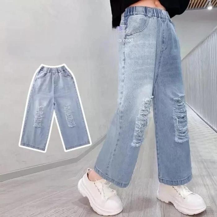 [PROMO] NEW ARRIVAL CELANA JEANS SOBEK NEW KULOT ANAK PEREMPUAN UMUR 613 TAHUN FASHION SNOW BLUE 24