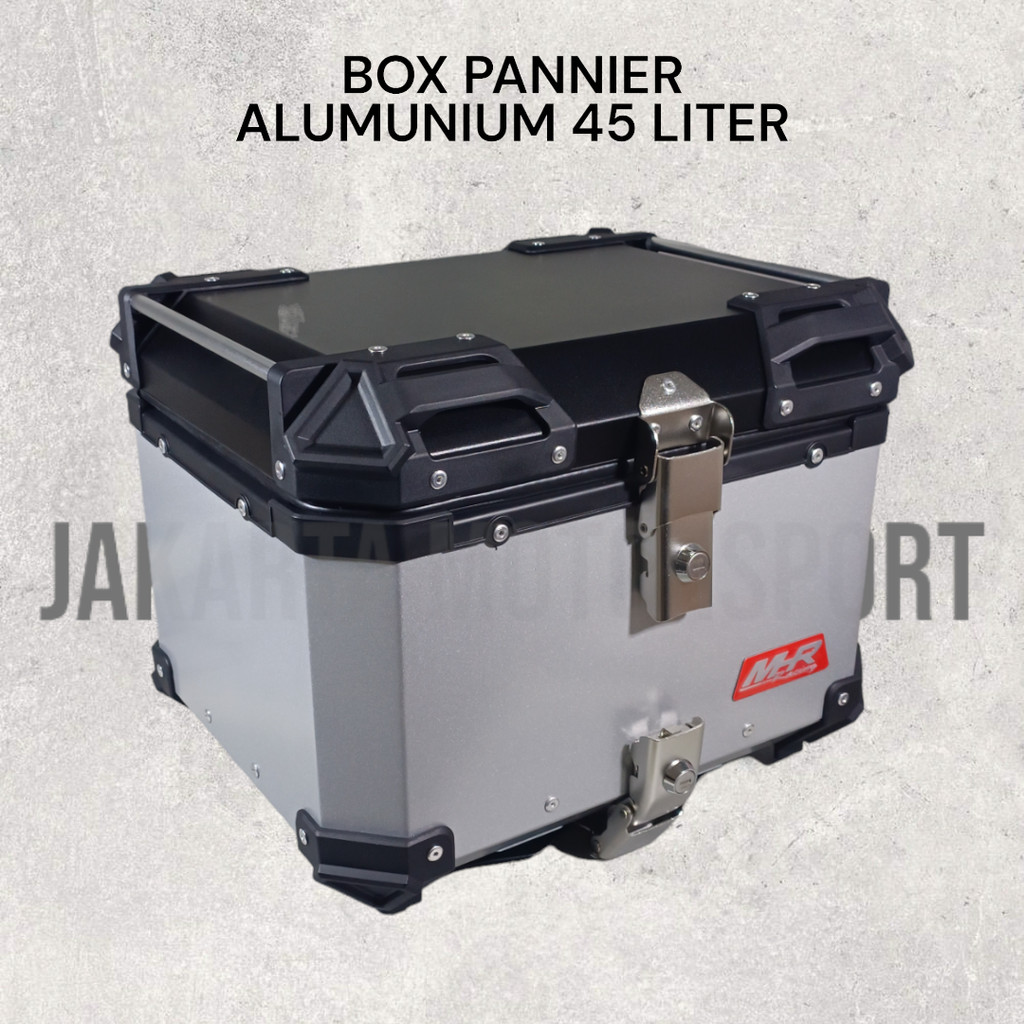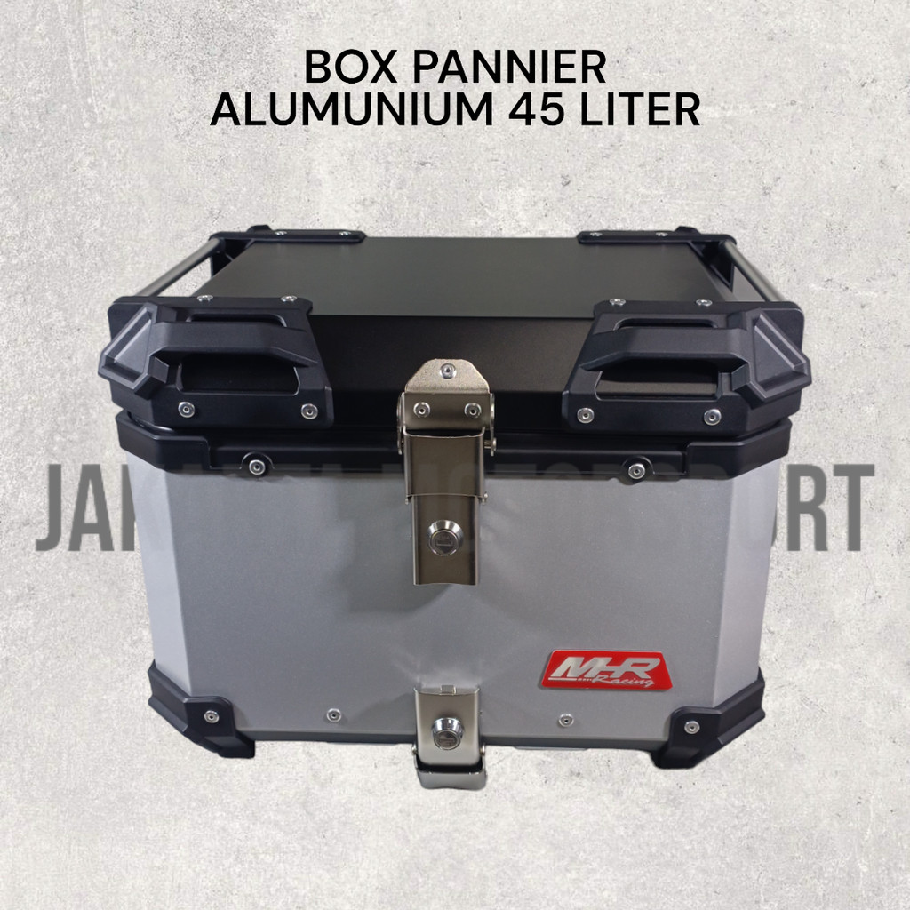 MHR Racing Top Case Box Alumunium 45L Silver Quick Release Tail Box Motor Touring Kotak + Sandaran