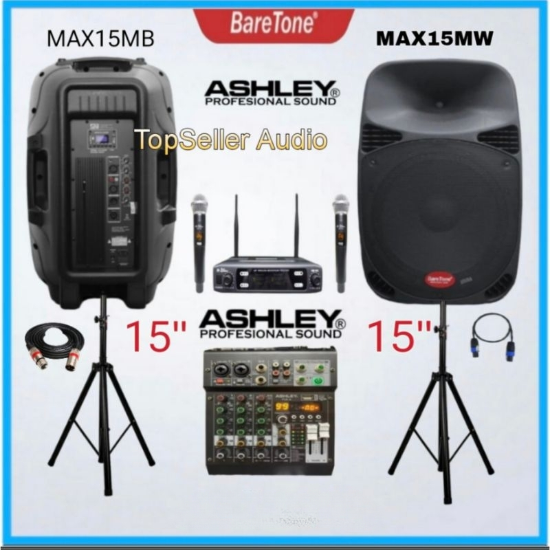 Paket Sound System Karaoke Speaker 15 inch BareTone ( Aktif & Pasif ) Original 2 Mic Wireless Bergaransi 1tahun