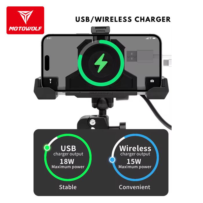 [PROMO] HOLDER HP MOTOR WIRELESS USB CHARGER STANG SPION 360 ANTI MALING STANG
