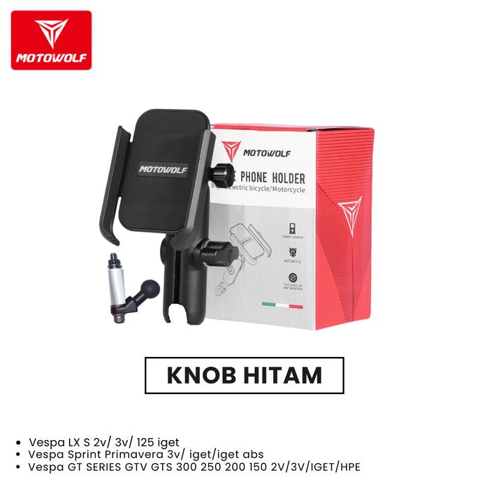 [PROMO] PHONE HOLDER 2821 VESPA MATIC LX S SPRINT PRIMAVERA GTS ALMUNIUM ALLOY KNOB HITAM