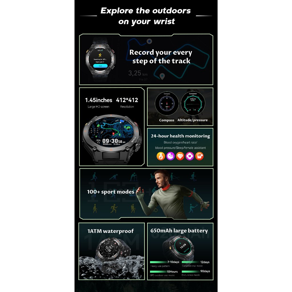 Huawei Smart Watch Kc82 | Built-In Gps | Jam Tangan Pintar | Tahan Air 1Atm | Jam Tangan Militer | Ketinggian/Tekanan Ud