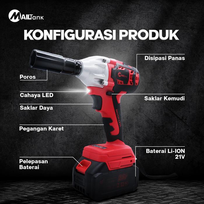 [PROMO] SH559 CORDLESS IMPACT WRENCH 21V BRUSHLESS 300NM IMPACT BATERAI BISA BOLAK BALIK MESIN BOR UNTUK BAUT MOBIL MOTOR , IMPACT 1 SET KOMPLIT MERAH