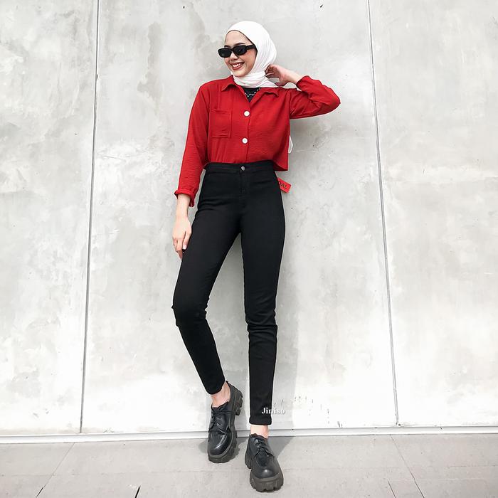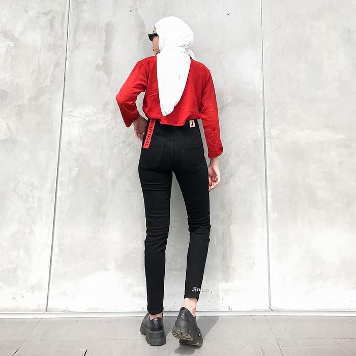 [PROMO] BODY GOAL 862 HIGHWAIST CELANA JEANS WANITA WARNA BLACK HITAM 29