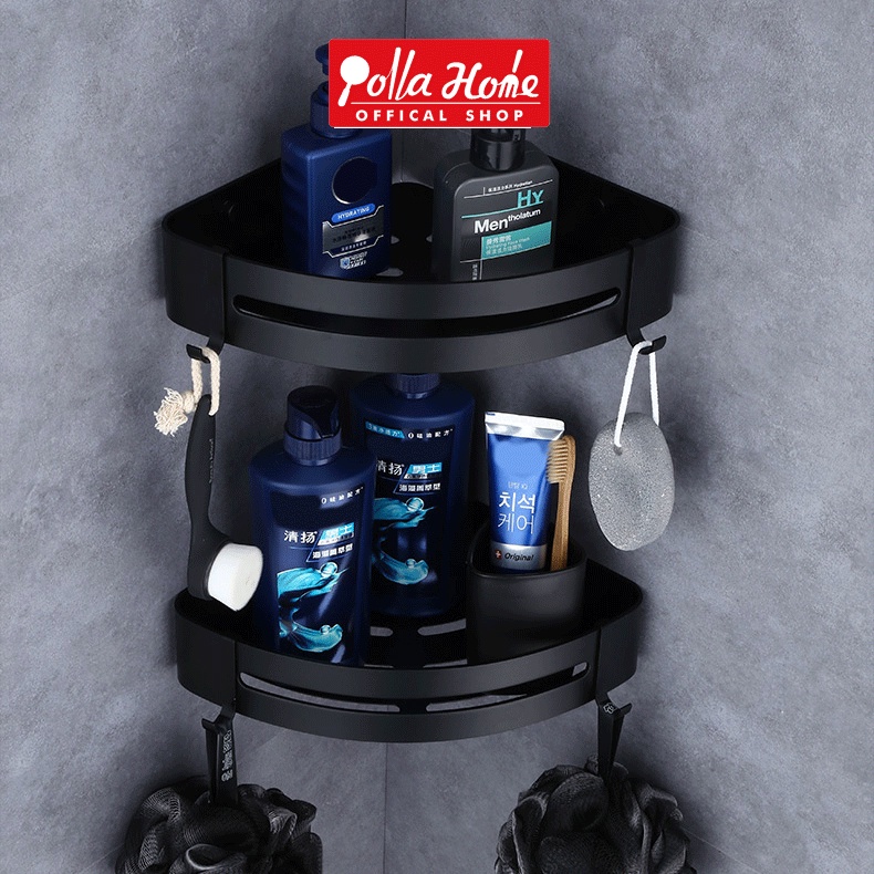 Ollahom Rak Sudut Kamar Mandi Warna Hitam 2 Susun Tempat Sabun Dan Shampo Mandi