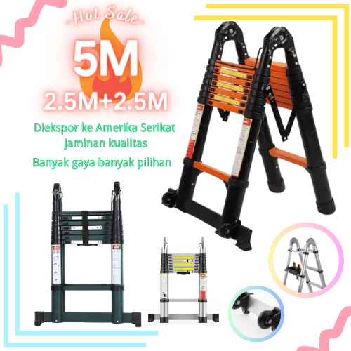 BOWEITI Tangga Lipat Aluminium 5M Teleskopik Double 8M/6.4M/5.6M/5M/4.4M