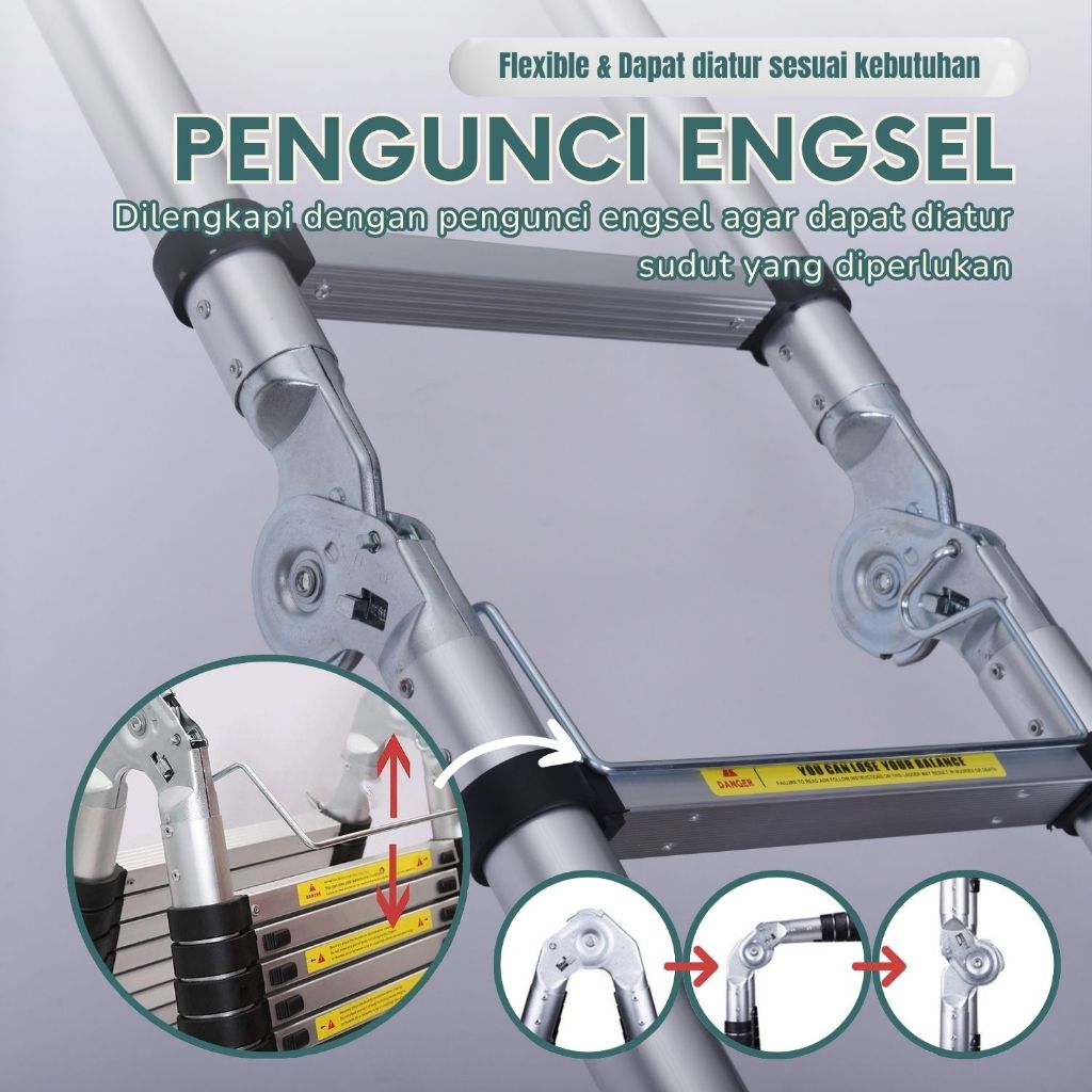 Tangga Lipat Aluminium Teleskopik Portable 3.8/4.4M/5 Meter Double Telescopic Ladder Multifungsi