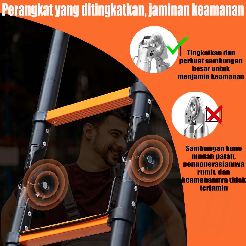IXCE teleskopik aluminium alloy tangga lipat hitam orange 4.4M/5M/6.2M tangga teleskopik ganda