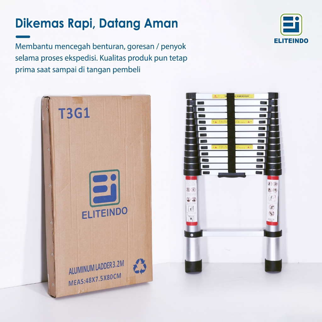 ELITEINDO Tangga Lipat Aluminium Teleskopik Lurus 1.4m/3.5m/4.1 Meter Single Ladder Multifungsi Kuat