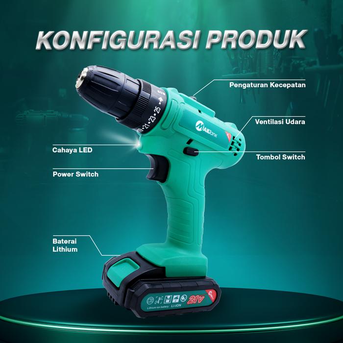 [PROMO] MESIN BOR BATERAI 21V CORDLESS DRILL SH201 UNTUK KAYU TRIPLEK BESI SH201