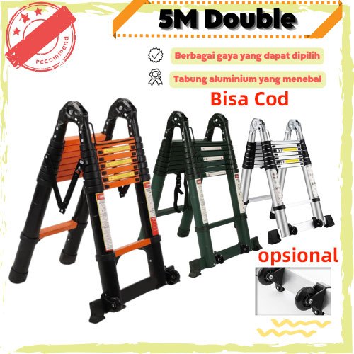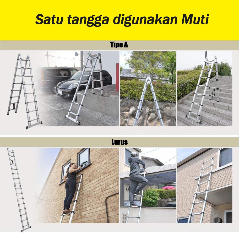 BOWEITI Tangga Lipat Aluminium Teleskopik Double Telescopic Ladder 4.4M/5M/5.6M/6.4M/8M