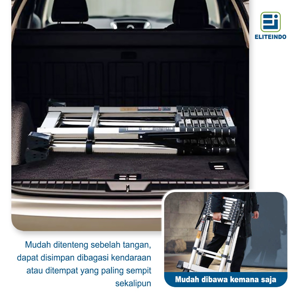 ELITEINDO Tangga Lipat Aluminium Teleskopik Portable 3.8M/4.4M/5 Meter Telescopic Ladder Multifungsi