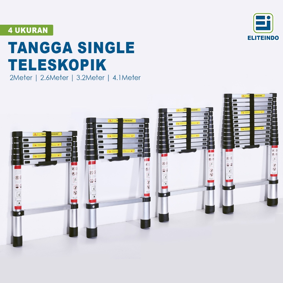 ELITEINDO Tangga Lipat Aluminium Teleskopik Lurus 1.4m/3.5m/4.1 Meter Single Ladder Multifungsi Kuat