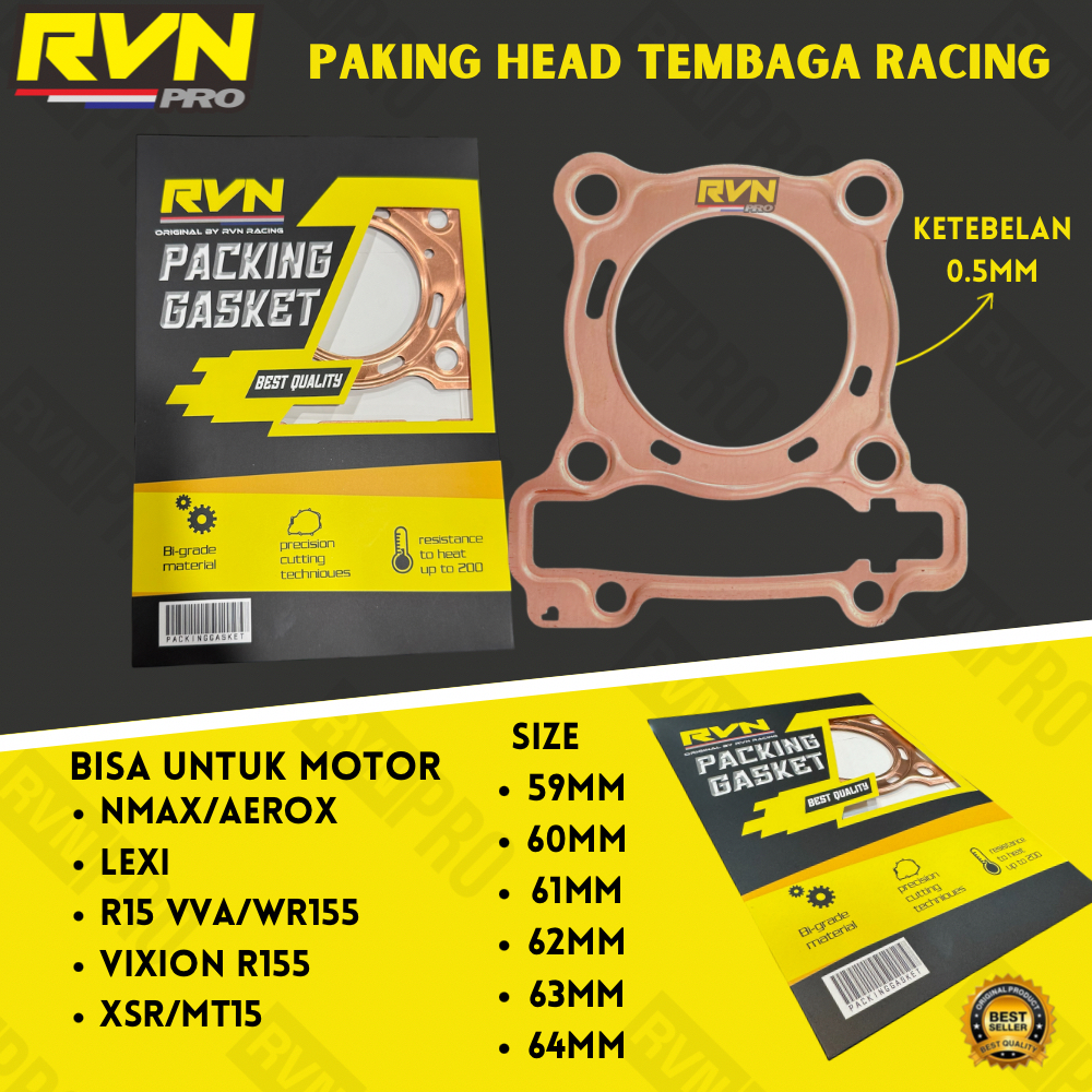 Perpak Gasket Paking Packing Blok Head Tembaga Nmax Aerox R15 Vva V3 V4 Wr155 Vixion R 155 Mt15 Xsr Lexi 58 59 60 61 62