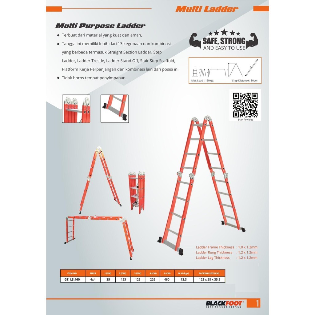 Tangga Lipat Aluminium Blackfoot 4x4 / 4.6 Meter Tangga MultiFungsi