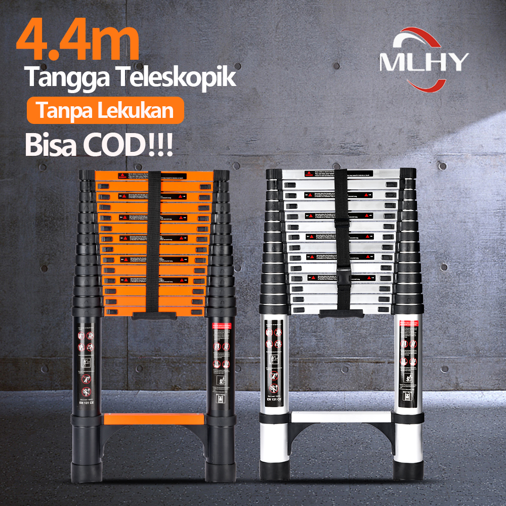Ready!MLHY Tangga Teleskopik tanpa lekukan 4.4M Aluminium Lipat Aluminium Telescopic Single Ladder 4.4M Hitam Oranye dan