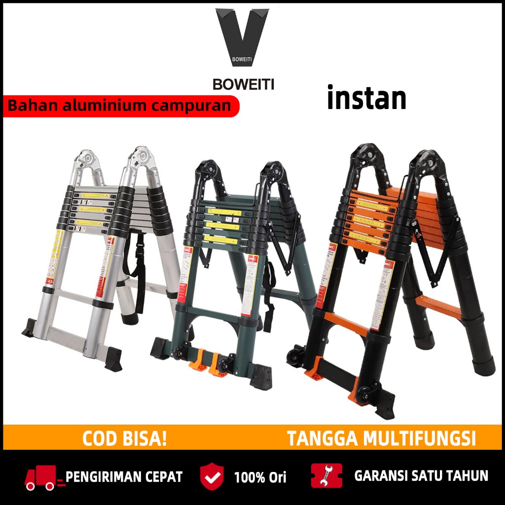 BOWEITI Tangga Lipat Aluminium 4.4M/5M/5.6M/6.4M Bisa Instant Banyak Gaya Kualitas Tinggi Warna-warna Unik Double Teles