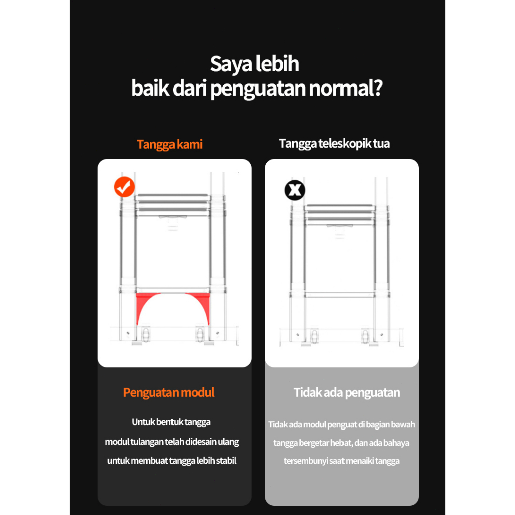 IXCE teleskopik aluminium alloy tangga lipat hitam orange 4.4M/5M/6.2M tangga teleskopik ganda