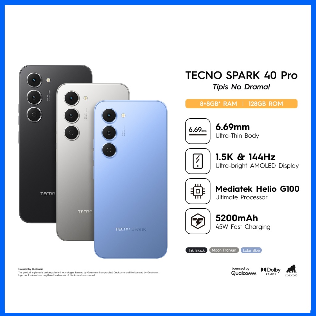 TECNO SPARK 40 Pro - 8+8GB*/128GB, 1.5K & 144Hz AMOLED Display, Ultra Thin Body, Mediatek Helio G100 Ultimate, 5200mAh+4