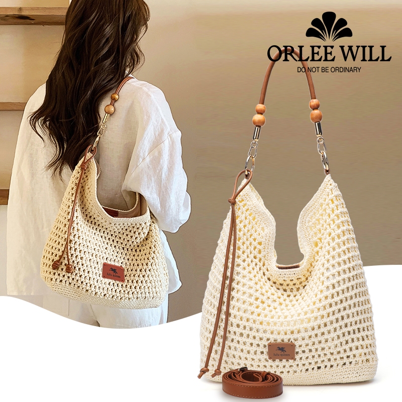 ORLEE WILL Tas Anyaman Wanita Tas Tote Hobo Bag Tas Rajut Liburan Bohemia OL-K52