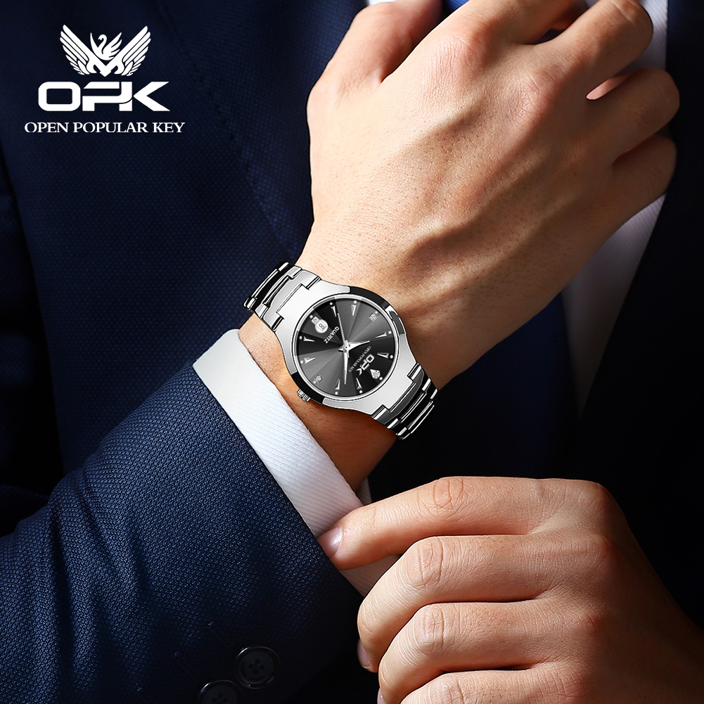 OPK Jam Tangan Couple Pasangan Anti Air Original Hitam Perak Stainless Couple Watch Model 8105 ORIGINAL BEST SELLER
