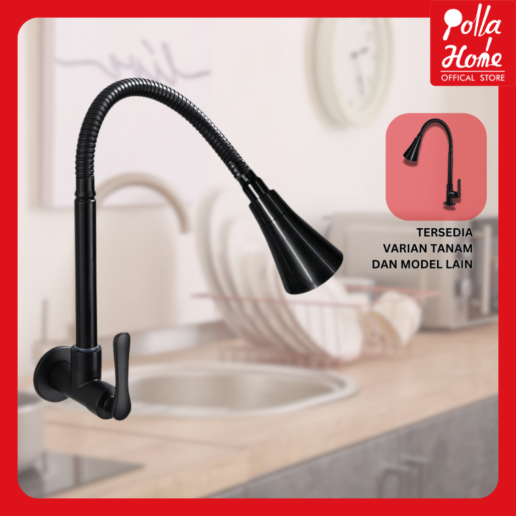 Ollahom Kran Angsa Kran Air Fleksibel Hitam Kran Cuci Piring Dapur
